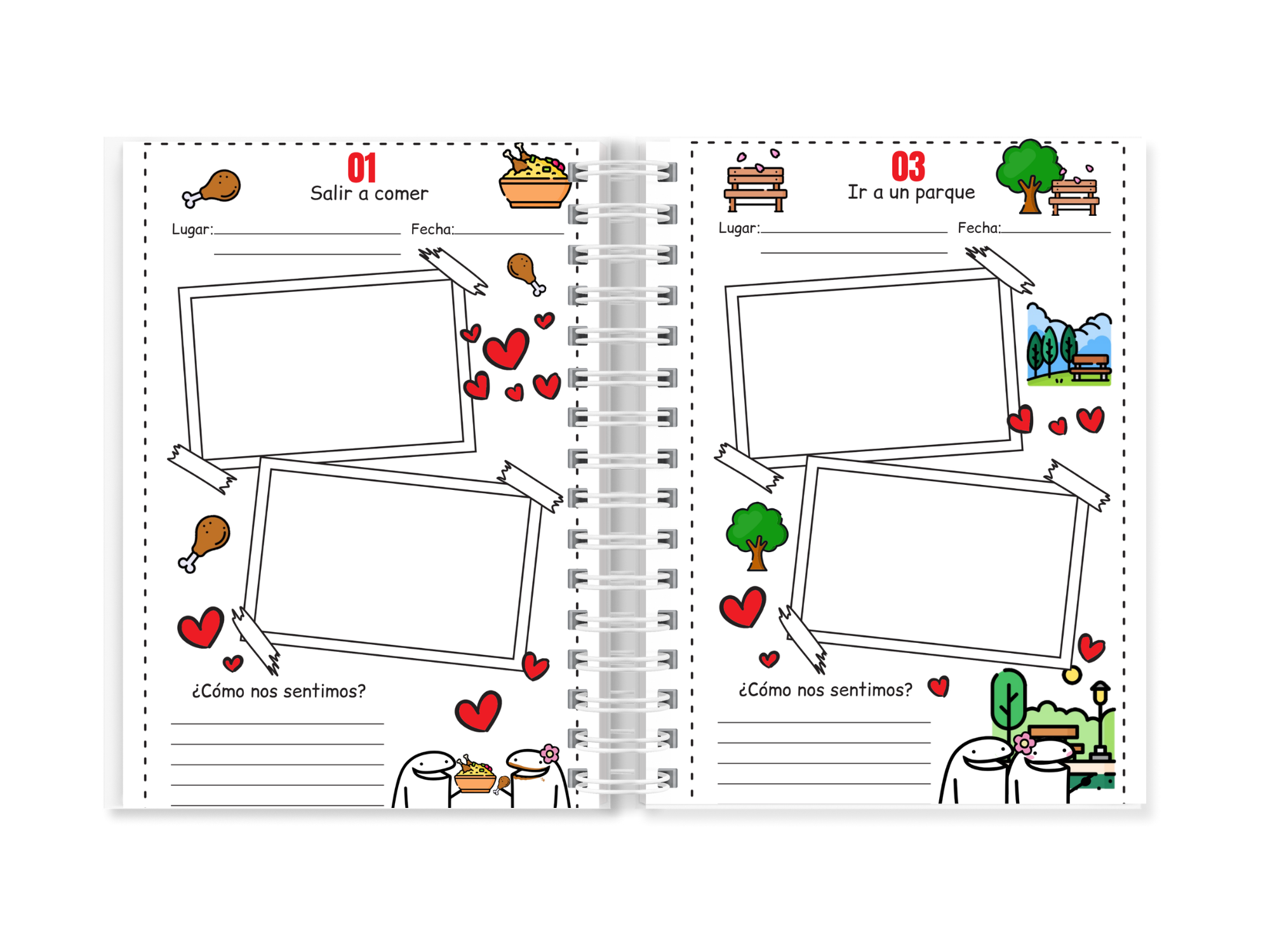 Secciones para pegar fotografías, porque los mejores momentos no merecen quedarse atrapados en el celular.
